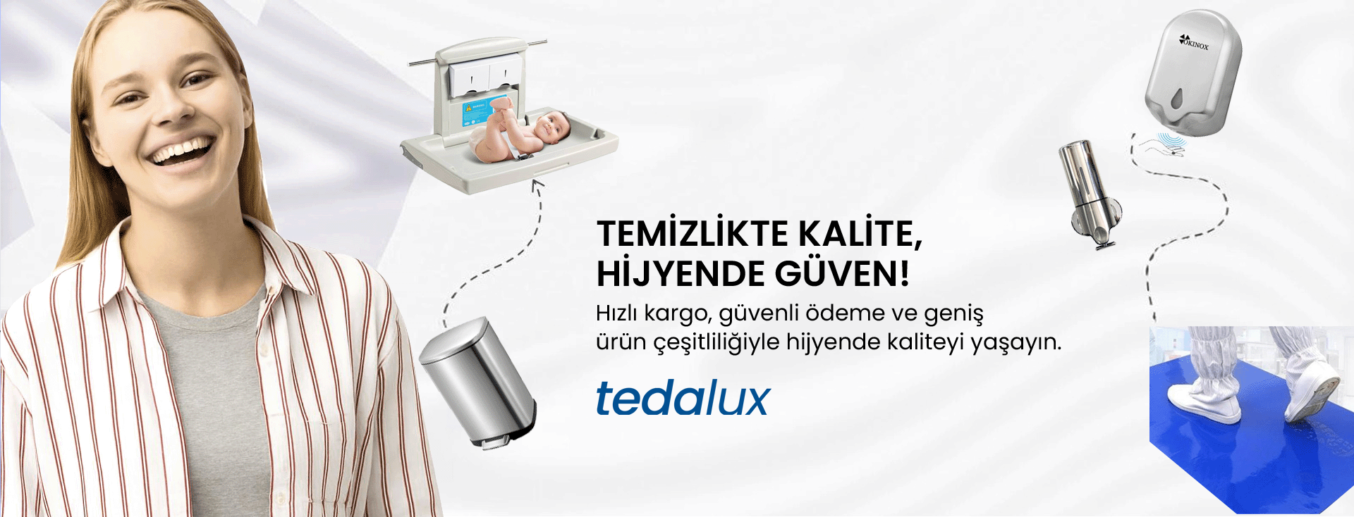 Tedalux, inovasyona önem veren, modern tasarım anlayışını işlevsellikle birleştiren bir marka olarak; işletmelerin ihtiyaç duyduğu ekipmanları tek çatı altında toplar ve hızlı tedarik avantajı sunar. Amacımız, müşterilerimizin operasyonel süreçlerini kolaylaştırmak, iş güvenliğini artırmak ve kullanım ömrü yüksek ürünlerle maliyet avantajı sağlamaktır.
